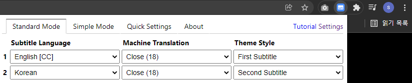 그러면 오른쪽 상단에 Dualsub 버튼이 생긴것을 볼 수 있습니다